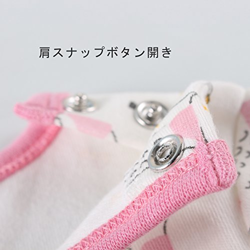 - お腹が出ない安心ベビーウェア、出産祝いに人気。股下はスナップなのでオムツ替えラクラク。肩ボタン開き、着脱簡単。