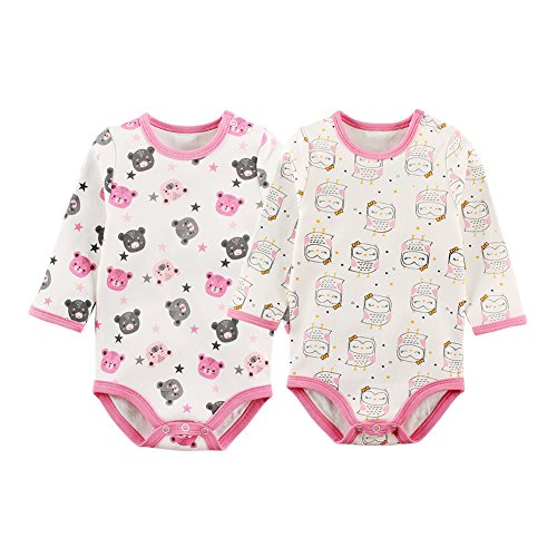 Baby Nest 長袖ボディースーツ 柄違い 2枚セット 女の子 ベビー服 新生児 ロンパース コットン 9-12M