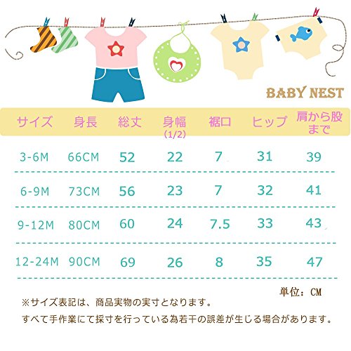 66:年齢3-6ヶ月,おすすめ身長66cm,着丈52cm,1/2身幅22cm,ウエスト31cm