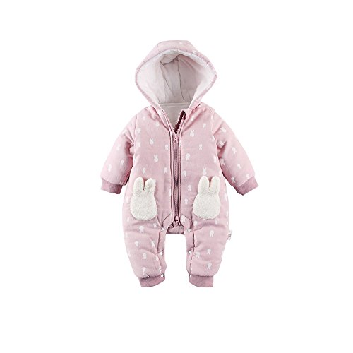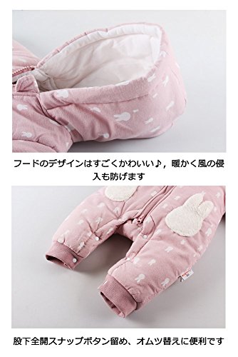 Baby Nest ベビー服 長袖カバーオール ロンパース コート フード付き コットン100% 男の子 女の子 防寒 秋冬用 ピンク 9-12M