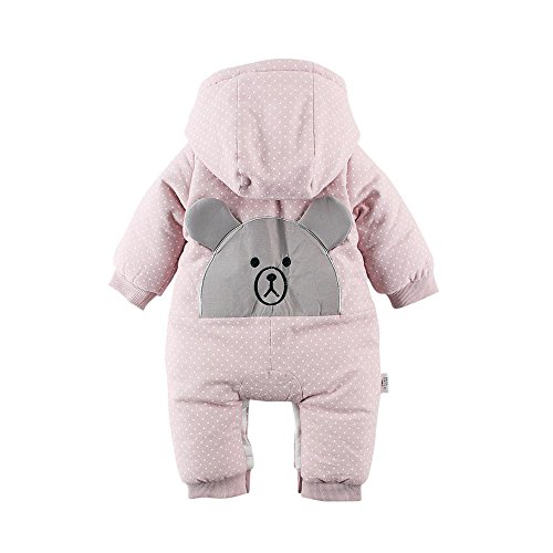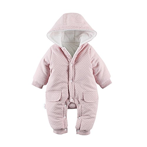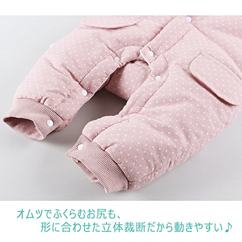 Baby Nest ベビー服 前開き カバーオール 防寒 秋冬用 長袖ロンパース フード付き 女の子 男の子 ピンク 6-9M