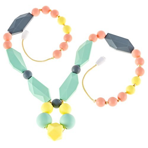 Secret garden is a fashionable statement piece packaged in a pretty floral PVC gift bag making it gift ready for any baby shower or any other occasion. Not only will it make mom feel pretty, but it will be a life saver during nursing sessions, giving your little one something to focus on and occupy their little hands. Chew-Choos is a SAHM company who understands the needs of modern parents. Consider these other great benefits that make our products so popular: 1. Fantastic conversation starter! Most do not even realize its multipurpose use as a baby teether. 2. Perfect accessory to wear with baby wraps or carriers. 3. It is suggested that this could serve as a sensory object for special needs children with mild chewing needs (always with adult supervision). 3. Imported from a trusted manufacturer passing worldwide regulations: FDA, LFGB, RoHS, CCPSA, EN71, CA Prop 65. You can feel secure knowing that it is pure, safe and non-toxic. Chew-Choos can provide documentation per your request. 4. Excellent alternative to traditional fashion jewelry which can irritate sensitive skin. This necklace is hypoallergenic, lead-free, latex free, cadmium-free, and non-toxic through and through.