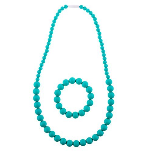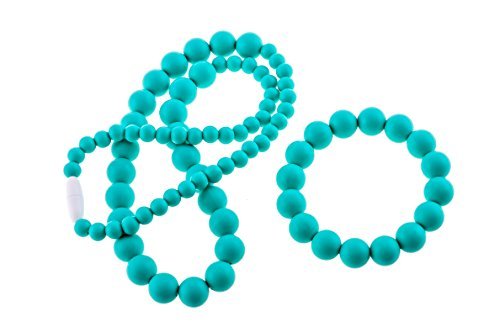 Chew-Choos 'Ananya' Silicone Teething Beads Necklace and Bracelet Set 30"- Fashionable, Safe, Non-toxic and Soothing (Turquoise) [並行輸入品]
