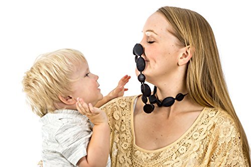 100% Safe for babies: Eco-friendly food-grade FDA-approved silicone; Chew-Choos are free of BPAs, Phthalates, cadmium, lead, latex or any other harmful toxins;Soothing relief: soft yet firm and faceted texture helps reduce drooling; Natural method to manage teething pain and tenderness while providing a good sensory experience for your child; Can be frozen or cooled just like traditional teethers;Baby shower gift idea: Best accessory for wearing baby wrap; entertains curious nurslings who might otherwise pull hair and scratch; No one will guess its dual purpose as a droolery piece since it is equally fashionable.;Sanitary: Chew-Choos is a great alternative to regular teether toys that inevitably end up on unsanitary floors. These are hygienic, hypoallergenic and resistant to bacteria. Dishwasher safe and easy to clean by hand with soapy water and toothbrush.;Comfortable: Chic jewelry that is adjustable to your preferred length; includes a sturdy breakaway safety clasp (pvc); Has bare cord at the nape of the neck to prevent tangling and pulling hair