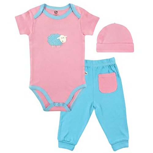 Hudson Baby ハドソンベビー ロンパース・帽子・パンツ3点セット (6-9, ひつじ ピンク) [並行輸入品]