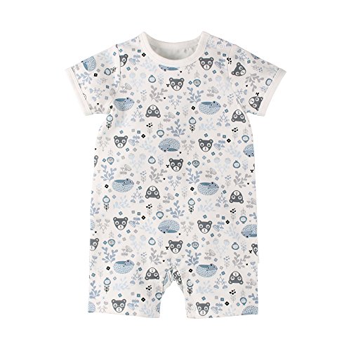 Baby Nest 夏 ベビー服 半袖ロンパース 女の子 男の子 肩ボタン フルプリント コットン ハリネズミ 9-12M