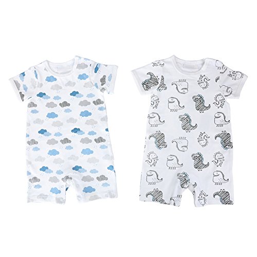 Baby Nest 夏 ベビー服 半袖ロンパース 2枚セット 女の子 男の子 肩ボタン 動物柄 コットン (セット4) 18-24M