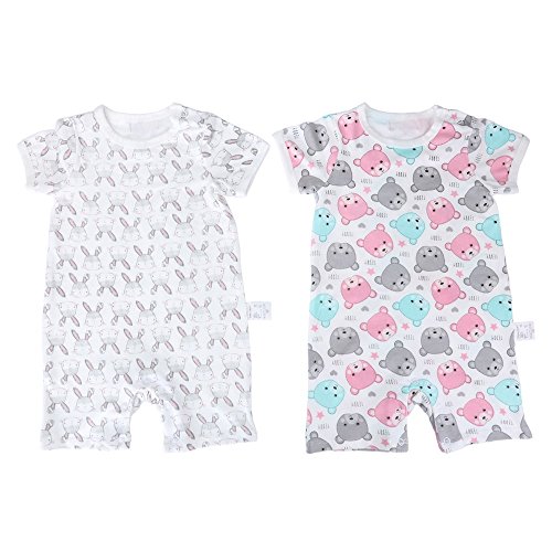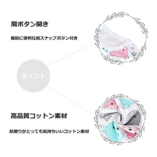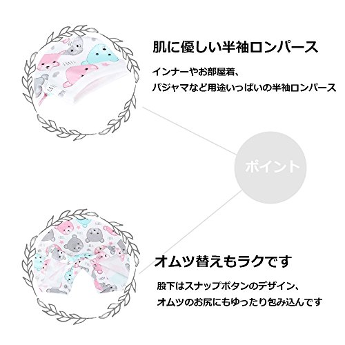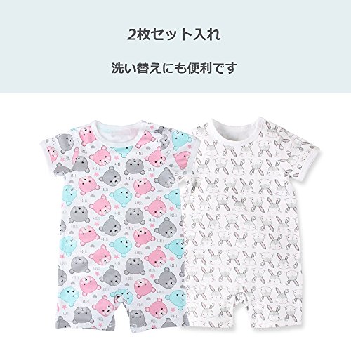 Baby Nest 夏 ベビー服 半袖ロンパース 2枚セット 女の子 男の子 肩ボタン 動物柄 コットン (セット3) 9-12M