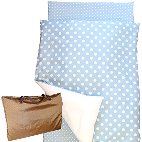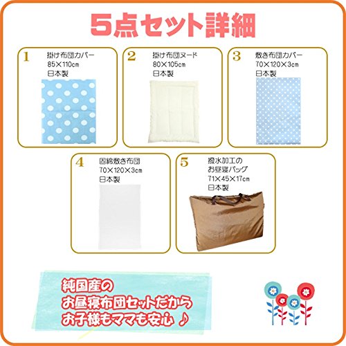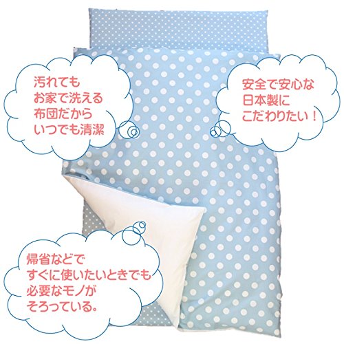 「 日本製 」 お昼寝布団セット 5点 シャボン玉ブルー ( 大きなdotと小さなdotのシンプルなデザイン )