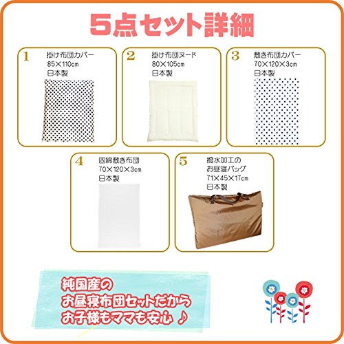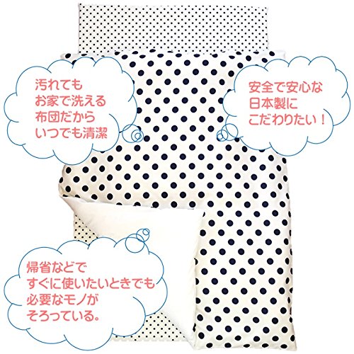 - 商品素材 ◆ 掛け布団カバー 85cm×110cm 綿100% ◆ 掛け布団ヌード 80cm×105cm 側生地:ポリエステル65%・綿35%、中綿:ポリエステル100% ◆ 敷き布団カバー 70cm×120cm×3cm 綿100% ◆ 固綿敷き布団 68cm×118cm×3cm 側地:ポリエステル100%、中綿:ポリエステル100% ◆ 撥水加工のお昼寝バッグ 71cm×45cm×17㎝ 側生地:撥水加工ナイロン100%(完全防水ではありません。) ※個々の製品は手作業で縫製しておりますので寸法に若干の誤差が生じる場合がございます。