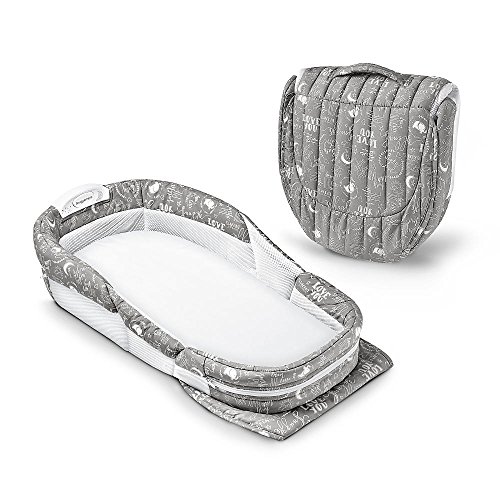 灰色の象のスタイルのBaby Delight Snuggle Nest Surround XL幼児用寝台で、自分のベッドで赤ちゃんのためのより保護されたオープンなエリアを作りましょう。ロールオーバーを防止しながら、2つのリジッドベント付き壁面ユニットは、赤ちゃんとあなたの大人の寝具を分離します。寝台のサイドパネルは柔軟性があり、簡単に手をつないで小さなものにアクセスでき、空気循環用の構造メッシュを備えています。サウンド&ライトユニットは、子宮やブラームスの子守唄の穏やかな夜の光と落ち着いた音を提供します。 5段階のボリュームコントロールと自動シャットオフ機能により、若い人の睡眠環境を簡単に調整できます。旅行の時には、寝心地は簡単かつコンパクトに折り畳まれます。