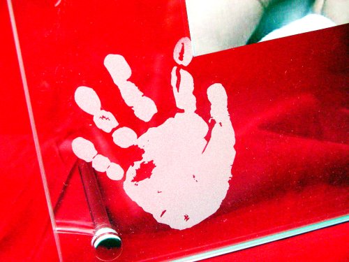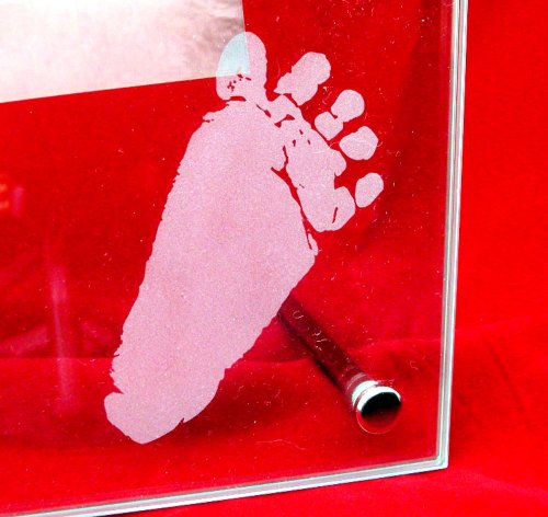 クリアなガラスの中に浮かび上がる手型と足型 皆に祝福され生まれた赤ちゃんそんなご両親の気持ちを永遠に刻むガラスのフォトフレームです。「幸福の天使」のシルエットと左右に飛んでいるエンジェルがアクセントとなってより赤ちゃんのメモリアルを引き立てています。2枚のガラスを重ねる事で手型・足型の立体感を表現また軽量化も実現しましたので気軽にどこにでもお好きな場所に置けるのもいいですね。贈り物にもピッタリですよ!●※「ミニタイルプレゼント」わずか2cm角にタイルに赤ちゃんの手形か足型を縮小して彫刻してプレゼント赤と青からお選びになれます。●※彫刻の情報(デザイン・字体等)に関しましては、お申し込み後、弊社から送らせていただくBabyキット(御申込書と手形・足形作成キット)にご記入ください。