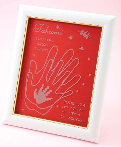 ●パパとママと赤ちゃん家族皆んな一緒! 1枚のガラスに仲良く収めました。 もちろん全員のお名前入りで最高のメモリアルになります。 バックカラーは4色 デザインは縦型と横型をご用意いたしました。●パパとママの手型はラインで彫ります その真ん中に赤ちゃんの手型を彫刻し 親子手型の完成です。 手型の周りを沢山の流れ星をデザインしました。 ご両親が赤ちゃんのこれからの幸せを願う 気持ちを願いが叶う流れ星として表現しました。 永遠に残るメモリアルに家族全員一緒と言うのがうれしいですね!●※「ミニタイルプレゼント」わずか2cm角にタイルに赤ちゃんの手形か足型を縮小して彫刻してプレゼント赤と青からお選びになれます。●※彫刻の情報(デザイン・字体等)・縦型か横型・バックカラーに関しましては、お申し込み後、弊社から送らせていただくBabyキット(御申込書と手形・足形作成キット)にご記入ください。