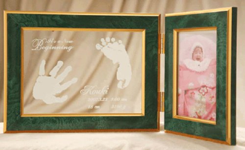 高級感溢れる大理石調メモリアル どちらの色のフレームにも It`s A New Beginning {新しい人生のはじまりに} の言葉を刻みました。 赤ちゃんの新しい人生のはじまりを祝福する 言葉はご両親の気持ちです。 *手型と手型・足型と足型のデザインにも変更可能 ですのでお気軽にお尋ねください。 上品なマーブル大理石調のフレームは高級感があり 友人への出産祝いやギフトにも最適です。 頂いた人もきっと喜んで頂けますよ! また、自立式ですので小スペーズでも設置も可能。 右側にはLサイズの写真が入ります 赤ちゃんのベスト・ショットを飾ってくださいね ●※彫刻の情報(デザイン・字体等)に関しましては、お申し込み後、弊社から送らせていただくBabyキット(御申込書と手形・足形作成キット)にご記入ください。