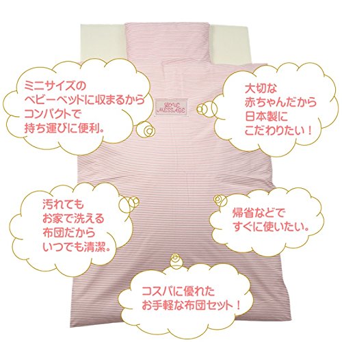 「 日本製 」 ベビー布団 セット ミニベッド サイズ 6点セット シンプルなデザインの ” レユール・ピンク ”