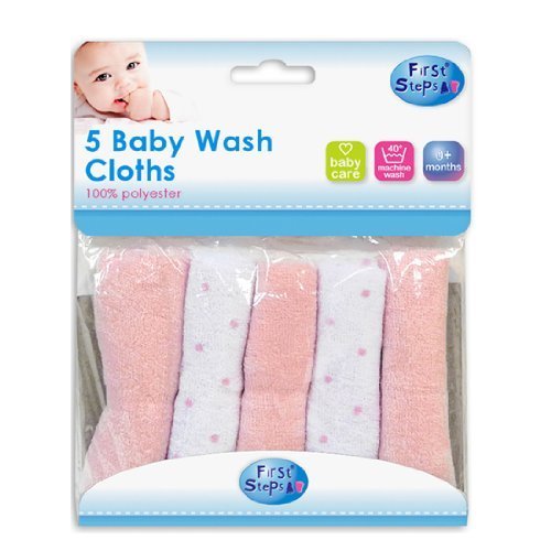 "First Steps" Pack of 5 Baby Wash Cloths for Baby from Birth