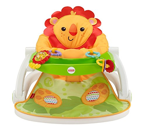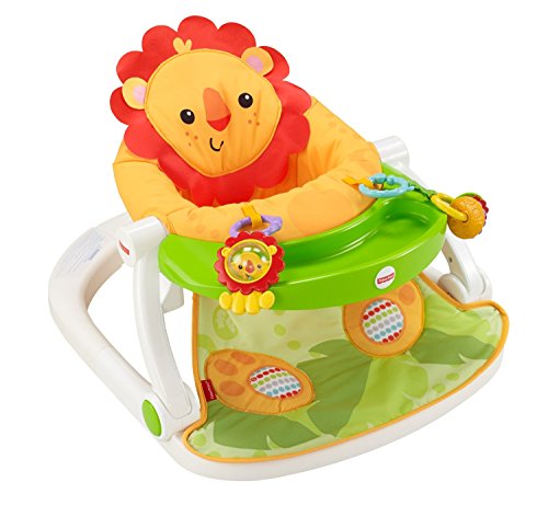 Color:Orange Comfy portable seat helps baby sit up for play. Fisher-Price sit-me-up floor seat with tray is the perfect sit-me-up solution for younger babies who want to sit up, but who still need added support. The wide, stable base and soft lion seat let baby sit up, see, and interact with the world around. Plus it has a removable tray to hold snacks and toys. Fun squeaker sounds from the lion foot pads reward kicky little feet, and two linkable toys within baby's reach offer even more sensory-stimulating, motor-skill-building fun. Sit-me-up floor seat is easy to assemble, and easy to fold flat for take-along or space saver storage. The tray stores flat underneath, too.