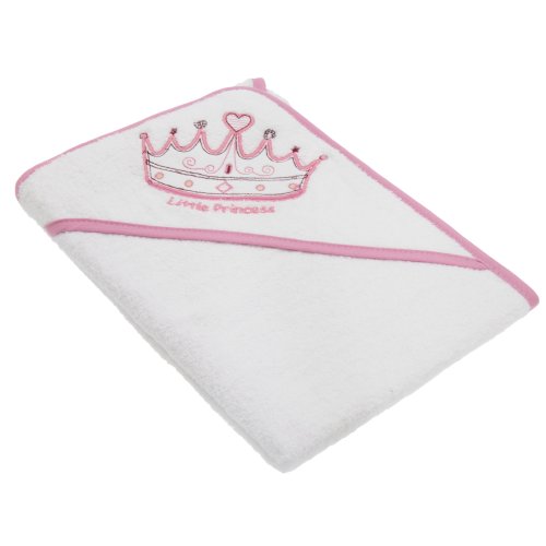 プリンセスフード付き ベビー用 バスローブ 女の子用(75cm x 75cm) (ホワイト/ピンク)