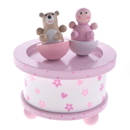 Baby Girl and Bear Wooden Music Box. It plays 'Hush Little Baby' while the baby & bear move around. Will look adorable in a little girls bedroom. Approx. 7cm high. Suitable for ages 3+