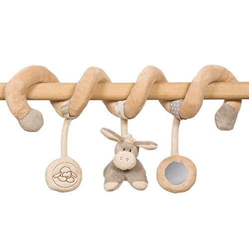 This gorgeous activity spiral is mainly for use on a cot, however due to the elasticity of the fabric it could also be attached to other similar shaped objects. This is the ideal early activity for your baby, offering an appropriate level of stimulation such as crinkle and rattle noises and different hanging toys. This Toy Spiral is just one product in Nattou?s range of gorgeous, fun and exciting nursery furnishings as well as activity and soft toys. So whether you are trying to create that perfect look and feel for your baby?s nursery or find that snuggly soft toy that your child will cherish for years to come, then this range has loads to choose from.