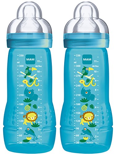 The MAM Baby Bottle 330ml 2 pack offers great value for money and features Mam's ultra soft silk teat for an easy switch between breastfeeding and bottle. The proven effect: market research confirms that 94% of babies accept the MAM silk teat. Thanks to its patented, silky soft surface, drinking from a bottle feels completely familiar. Like all MAM products, the bottle is BPA, PVC, lead-free, dishwasher and microwave-safe. The combination of style, technological innovation and medical know-how produces unique premium products. These bottles have a wide neck for easy filling and cleaning.