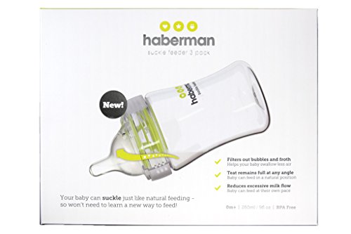 The Suckle Feeder is unlike any other baby bottle; the baby suckles on the teat in exactly the same way as they do on the breast. That means they feed at their own pace and you can combine breast and bottle feeding with out the risk of your little one suffering from nipple confusion. They develop their jaw muscles correctly; essential for proper dental and speech development as well as the ability to chew correctly as they grow. It is very effective in the fight against colic because even the smallest air bubbles are removed from the milk. The Suckle Feeder is very easy to clean, assemble and use. Haberman is a British company dedicated to innovative baby and toddler feeding products that help youngsters develop drinking independence; the only UK company focused exclusively on satisfying the needs of newborns and toddlers throughout their key drinking stages from suckling to sucking to sipping.