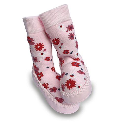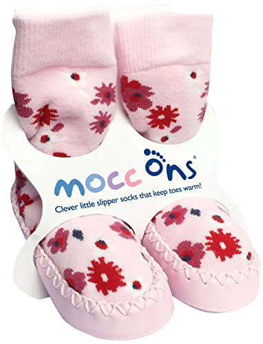 Mocc Ons Cute Moccasin Style Slipper Socks - 18-24 Months, Floral Ditsy