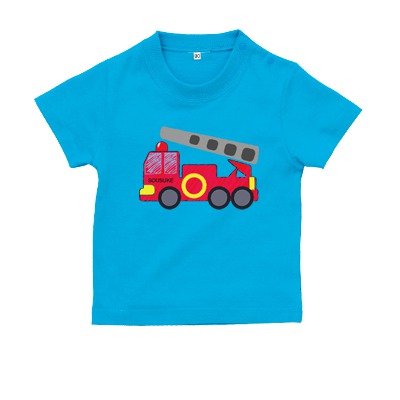 BabyChips 消防車(名入れ半袖ベビーTシャツ) 100 ターコイズ