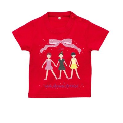 BabyChips アン,ドゥ,トロワ (名入れ半袖ベビーTシャツ) 70 レッド