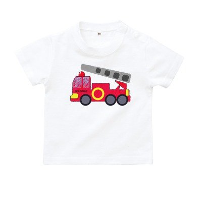 BabyChips 消防車(名入れ半袖ベビーTシャツ) 80 ホワイト