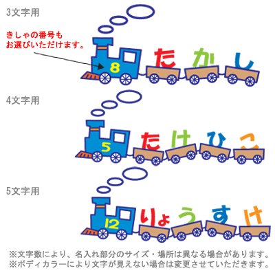 - こどもが大好きなきしゃのイラストです。番号を誕生月にすると、さらに喜ばれます