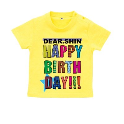 BabyChips HAPPY BIRTHDAY 【男の子バージョン】(名入れ半袖ベビーTシャツ) 110 イエロー
