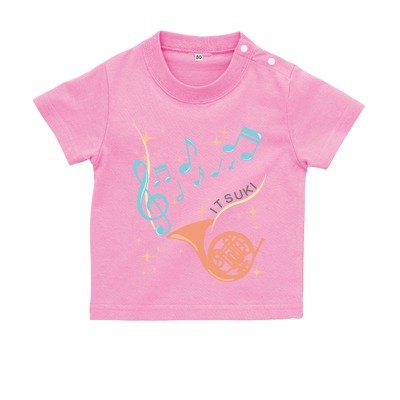 BabyChips ホルンと音符(名入れ半袖ベビーTシャツ) 90 ピンク