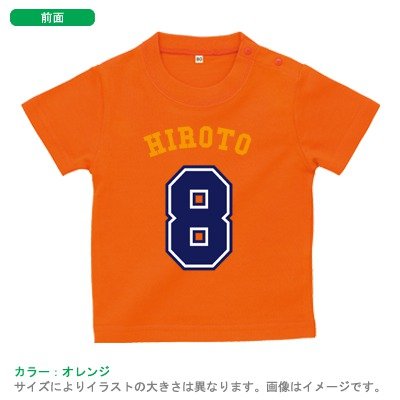 BabyChips ベースボールナンバー(名入れ半袖ベビーTシャツ) 90 オレンジ