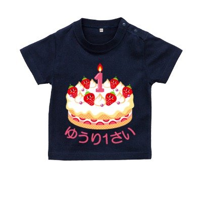 BabyChips Birthday Cake(名入れ半袖ベビーTシャツ) 90 ネイビー