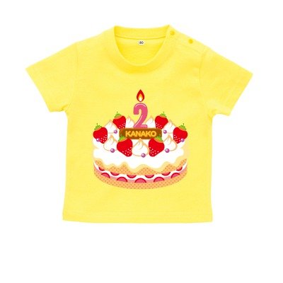 BabyChips Birthday Cake2(名入れ半袖ベビーTシャツ) 90 イエロー