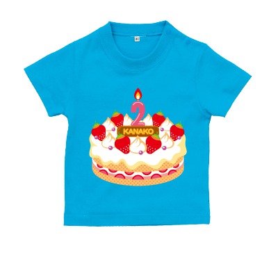BabyChips Birthday Cake2(名入れ半袖ベビーTシャツ) 70 ターコイズ