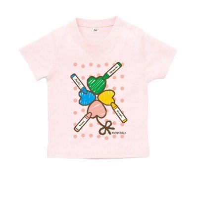 BabyChips ハッピークローバー(名入れ半袖ベビーTシャツ) 100 ライトピンク
