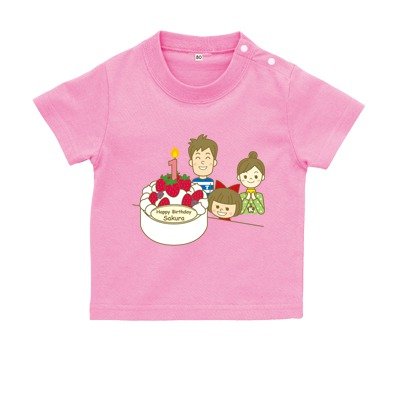 BabyChips みんなでHappy Birthday(おんなのこ)(名入れ半袖ベビーTシャツ) 120 ピンク