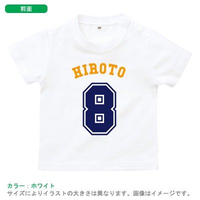 BabyChips ベースボールナンバー(名入れ半袖ベビーTシャツ) 130 ホワイト