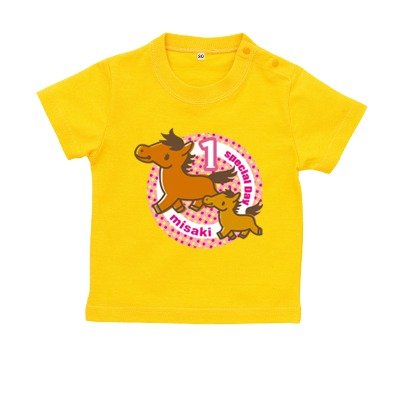 BabyChips お馬の親子(ピンク)(名入れ半袖ベビーTシャツ) 90 デイジー