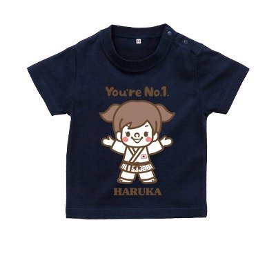 BabyChips ちいさな柔道選手(白:女の子)(名入れ半袖ベビーTシャツ) 150 ネイビー