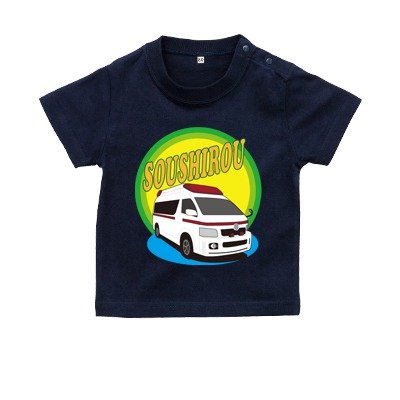 BabyChips 救急車(名入れ半袖ベビーTシャツ) 90 ネイビー