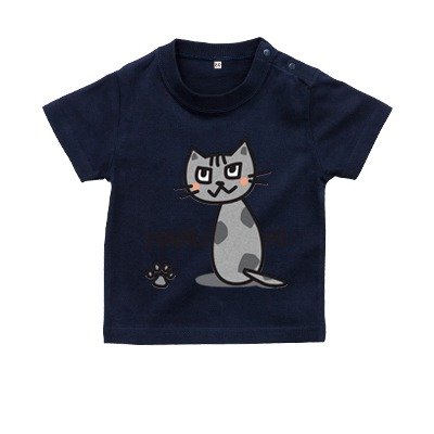 BabyChips ふりむき猫(グレー)(名入れ半袖ベビーTシャツ) 100 ネイビー