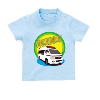 BabyChips 救急車(名入れ半袖ベビーTシャツ) 100 ライトブルー