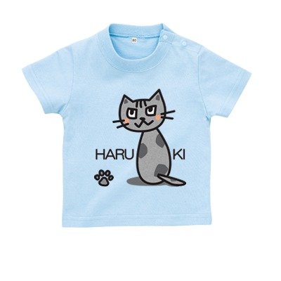 BabyChips ふりむき猫(グレー)(名入れ半袖ベビーTシャツ) 140 ライトブルー