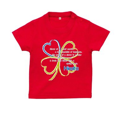 BabyChips HAPPYクローバー(ブルー)(名入れ半袖ベビーTシャツ) 90 レッド