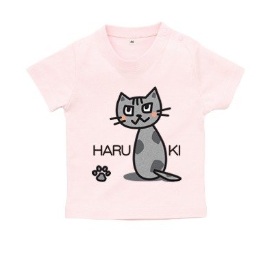 BabyChips ふりむき猫(グレー)(名入れ半袖ベビーTシャツ) 100 ライトピンク