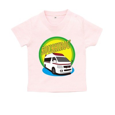 BabyChips 救急車(名入れ半袖ベビーTシャツ) 150 ライトピンク