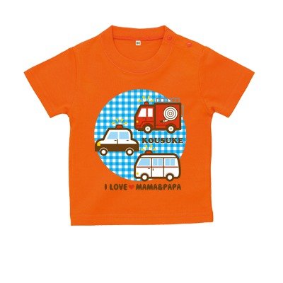 BabyChips のりもの(ブルー)(名入れ半袖ベビーTシャツ) 150 オレンジ